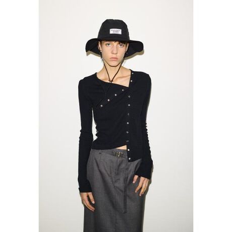 THROW by SLY【SLANT BUTTON L/S TOPS】■POINT:SSにご好評いただいた斜めの釦ディテールがポイントのクルーネックトップスの新色が登場。■DETAIL:スラブ糸のテレコ素材を使用し、斜めに釦を配置したことで遊びのあるデザインに仕上げました。釦を上だけとめてスリットにしたり、あえて釦を掛け違えてとめても一気にトレンド感の出せるアイテム。■STYLING:ベーシックな形なので、ボトムスも選ばず長く愛用できます。デイリーに使いやすいオフホワイト、ベーシックなブラック、目を惹くビビッドなライトグリーンの3色展開。■FABRIC/MATERIAL:スラブ糸のテレコ素材を使用。■透け感:なし■光沢感:なし■伸縮性:あり■裏地:なし※本品は素材の特性上色落ちします。洗濯、クリーニング、着用(使用)時に他の衣類や雑貨、家具類に色移りする事があります。特に汗や雨等で湿った状態では、色落ちが顕著になります。白、淡色との組み合わせは避け、お取り扱いには十分ご注意下さい。※商品画像はサンプルのため、色味やサイズ、素材の混率等の仕様に変更がある場合がございますので、予めご了承ください。※一部予約商品につきましては生産上の都合によりお届け予定日や店頭発売と前後する場合もございます。※追加生産商品は、一部の店舗、通販で販売中の場合がございます。予めご了承下さい。