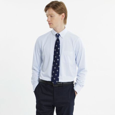 オーソドックスなボタンダウンシャツ。襟先の自然なロール感が着用時に立体感を生み、首回りをすっきりみせてくれます。