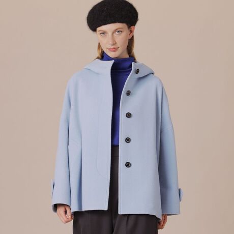 MACKINTOSH LONDONの定番モデル「ROSLEY/ロズリー」のフーデットショートコートです。ドロップした肩、裾に向けて広がる優雅なシルエットはインナーやボトムスを選ばず、どなたが着ても様になるコートです。総裏地付きです。同素材のステンカラーコート(品番:G5B14433)、ノーカラーコート(品番:G5B13433)もご用意しております。
