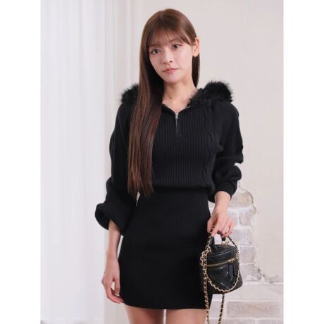 ファーフードニットワンピース