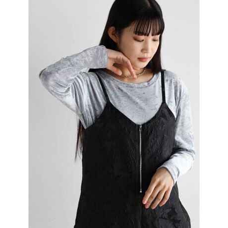 クラッシュ加工を施した、艶感のあるベロア素材で仕上げた1着。