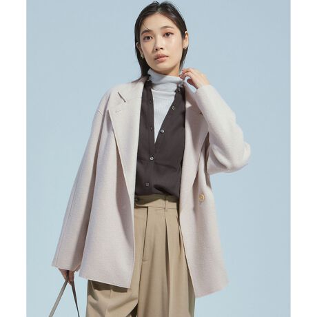 ゆったりとしたシルエットの1枚仕立てのライトアウターです。ウエストの釦を止めてピーコート風にも、上襟を軽く立て下襟を閉じてトレンチ風にも、様々なボトムとのコーディネートに着回しが楽しめます。釦をあけて軽く羽織るだけでもテーラー衿のきちんと感がでるので、カジュアルにも通勤にもお召し頂けるアイテムです。カラーは、優しく女性らしい印象のベージュ(#002)、コーデを引き締めるブラック(#005)クラシカルな雰囲気のキャメル(#034)、ニュアンスカラーがトレンド感の増すダルブルー(#074)の4色展開です。