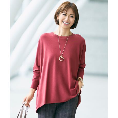 上品な光沢感がオールマイティなニットT■デザインどんなスタイリングにも合わせやすく汎用性の高いシンプルなニットTです。ふんわりとしたオーバーサイズのボディに対して袖をやや細めに作ることで、オーバーサイズでも膨らんで見えにくいデザインです。袖周りの収まりが良いので、寒くなる時期にはジャケット等のインナーとしても活躍します。素材を薄く仕上げているので、長い期間重宝するアイテムです。■素材しなやかなビスコースにストレッチが入った、適度な落ち感のあるエレガントな素材です。着心地、肌触り、通気性が良く、上品な光沢感が特徴です。■同素材アイテムスキッパーニット(KRWRGW0351)スカート(SKWRGW0351)7分袖ニット(KRWRCW0456)カーディガン(KRWRCW0457)