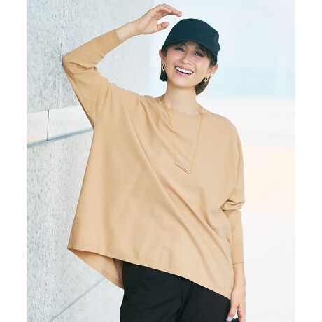 上品な光沢感がオールマイティなニットT■デザインどんなスタイリングにも合わせやすく汎用性の高いシンプルなニットTです。ふんわりとしたオーバーサイズのボディに対して袖をやや細めに作ることで、オーバーサイズでも膨らんで見えにくいデザインです。袖周りの収まりが良いので、寒くなる時期にはジャケット等のインナーとしても活躍します。素材を薄く仕上げているので、長い期間重宝するアイテムです。■素材しなやかなビスコースにストレッチが入った、適度な落ち感のあるエレガントな素材です。着心地、肌触り、通気性が良く、上品な光沢感が特徴です。■同素材アイテムスキッパーニット(KRWRGW0351)スカート(SKWRGW0351)7分袖ニット(KRWRCW0456)カーディガン(KRWRCW0457)