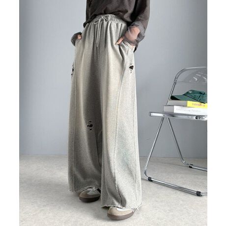 ヴィンテージ感漂うブラスト×ダメージ加工でトレンドデザインが詰まった裏毛ワイドパンツ。