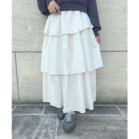 ボリューム感のあるギャザーフリルのティアードロングスカート。