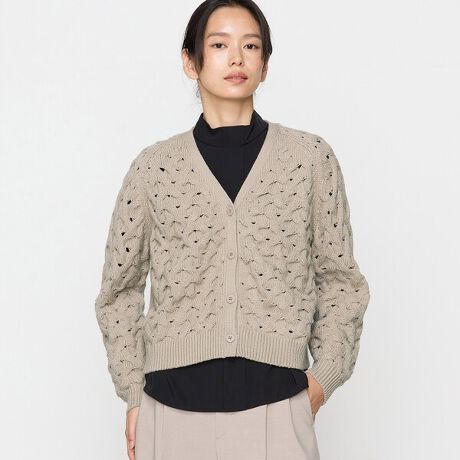 全体にボリューミーなケーブル柄で仕上げたエアリーケーブルカーディガンです。