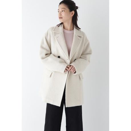 程よいミドル丈でパンツにもスカートにも合わせやすい一枚。柔らかな毛足感と明るいエクリュカラーが、冬の装いに華を添えてくれるアウターです。ボーダーアイテムをプラスしたフレンチマリンなスタイルもおすすめです。