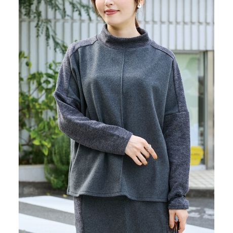 コットン混の起毛生地と同色リブを組み合わせたプルオーバー。