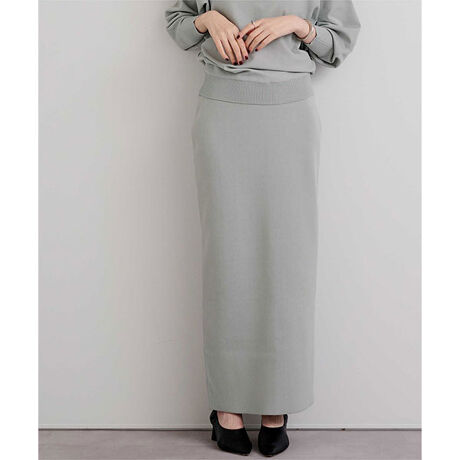 同素材のトップスとセットで着用できるニットスカート。