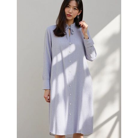 リボンがアクセントをプラスするストライプシャツワンピース
