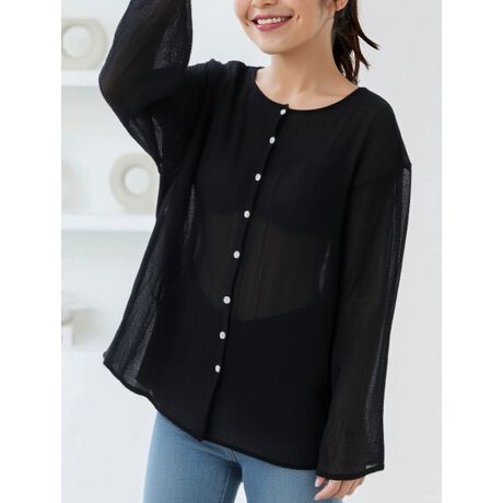シアーな透け感が軽やかな印象の楊柳シャツブラウス。程よくゆとりのあるシルエットに、袖口や裾に施したスリットが抜け感のある着こなしを演出します。一枚着としてはもちろん、フロントのボタンを開けてさらっと羽織ったスタイリングもおすすめです。