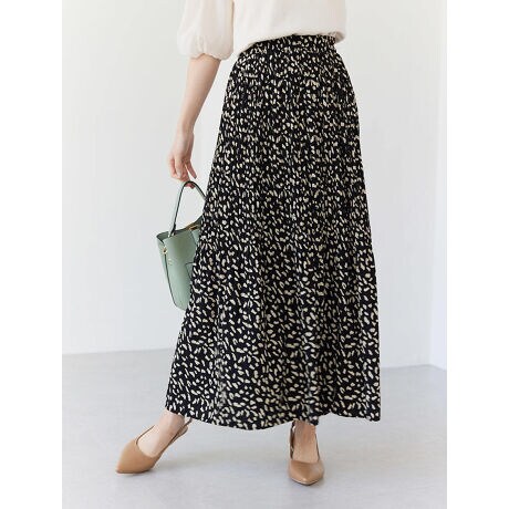 細かいプリーツ加工を施し、繊細な表情で揺らめくレオパード柄プリントのスカート。