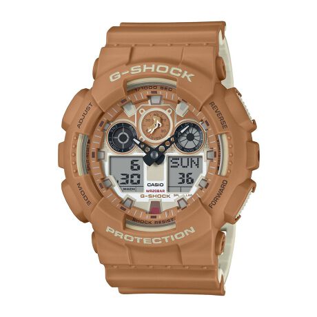 ベースモデルにはG-SHOCKのアイコニックなスタイルであるビッグケースのGA-100を採用。今回、犬の毛色から赤柴をイメージしデザインに落とし込み柴犬の魅力を表現しています。