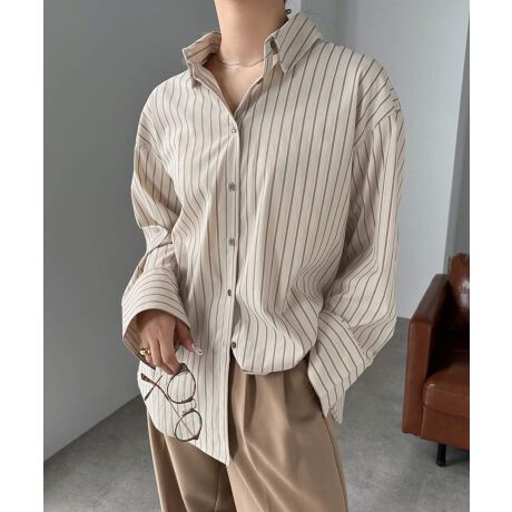 ストライプ オーバーサイズ 長袖 シャツ ブラウス