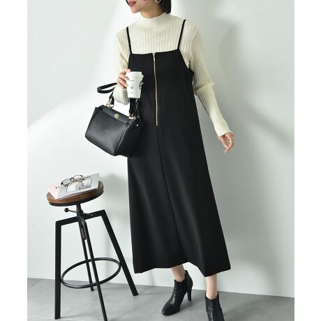 様々なシーンに着まわせるキャミワンピース。綺麗目な表情で肌触りも柔らかく、大人スタイルにピッタリな着丈もポイント。センターのファスナーがこなれた大人の印象をプラスしてくれ、華奢な肩紐とさりげなく光るフィルムストライプでより女性らしい雰囲気に◎
