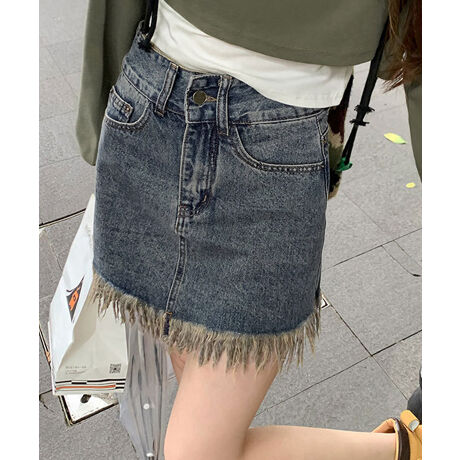 台形のベーシックなシルエットが幅広いコーデにマッチするデニムミニスカート