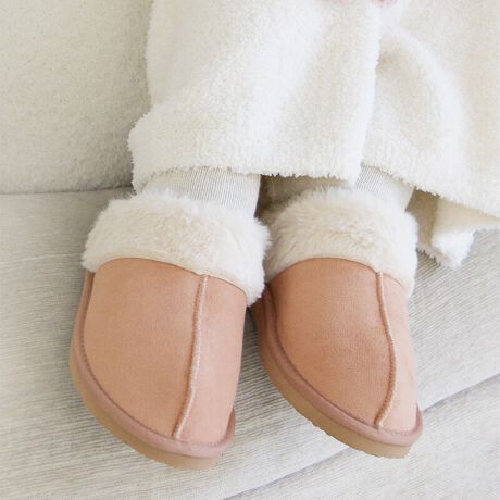 フェイクファーの肌触りが優しく、つま先まで隠れるスリッパタイプで室内も快適に過ごせるアイテム。