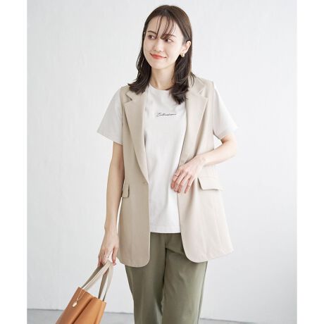 上品で洗練された印象をプラスするリネンライクテーラードジレ。