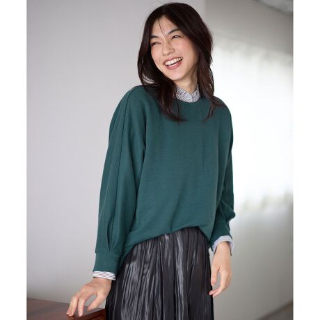 ・ドルマンデザインのプルオーバー・袖部分にカフスを付けて、きちんと感をプラス・後ろレングスにはテイルを付けて、気になる腰回りをカバー