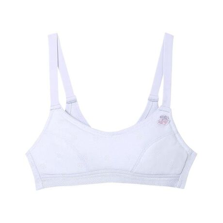【ジュニア用ブラジャー STEP2】ノンワイヤー ・かぶりタイプ ・ストラップタイプ(調節なし)★小学生高学年におすすめのファーストブラ【バストのふくらみはじめにつけるブラ】《やさしいつけごこちのジュニアファーストグループ》 ●やわらかな肌ざわり バックは、ポリエステルを綿でおおったカバードヤーンを使用し、綿のやわらかな肌ざわりにこだわったハーフトップブラ●さらっと快適 芯糸はポリエステルなので、綿100%に比べてすぐれた吸汗速乾性があり、汗をかいても乾きやすい素材を身生地に使用(綿混パターンメッシュフライス素材)●ふんわり、なめらかフィット カップの肌側は接ぎがなく、ふんわりここちよい肌ざわりで、敏感な成長期のバストにぴったり●からだの成長に合わせた工夫 からだの成長をサポートするカップ構造で、バストをやさしく包む 下辺部分は伸びのあるテープを使用し、気になるしめつけ感を軽減したソフトなつけごこち よく伸びるストラップと下辺メッシュ素材で、からだの成長の変化に対応●着脱しやすいかぶりタイプ・左胸にさくらんぼの刺繍モチーフ付き●詳細情報ワイヤーなしパッド受けなし※お洗濯は、必ず「取扱い表示」にしたがってください。