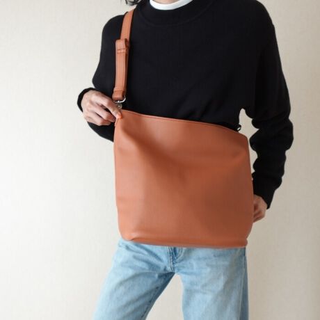 素材は高級感もあるシュリンクPUレザーで、カジュアルにもエレガンスにも合わせやすい便利屋さんです。