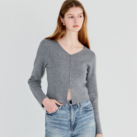 抜け感を演出する、フロントスリットニット
