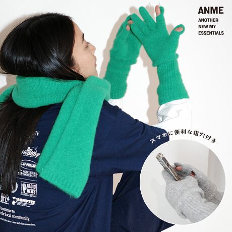 ウール混 モヘアライク リブ グローブ ANME アンメ