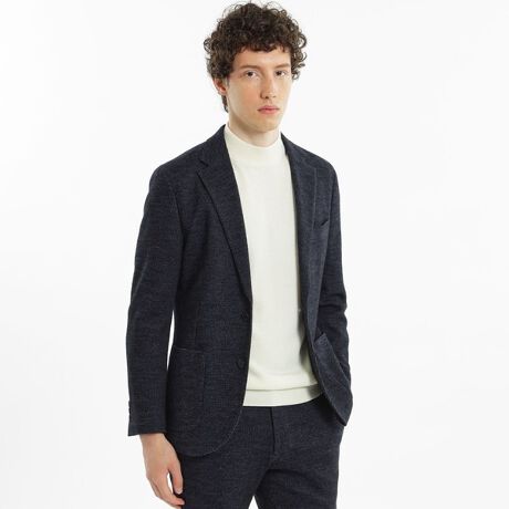 イタリアの名門生地ファクトリーEMMETEX社のウール混ジャージーを使用。上品な光沢によるシックでリュクスな表情かつ柔らかく滑らかな肌触りが最大の特徴です。
