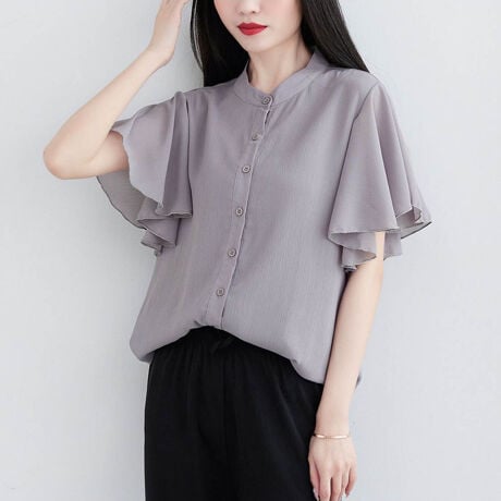 袖口に施されたフリルがアクセントの半袖トップス。<br>