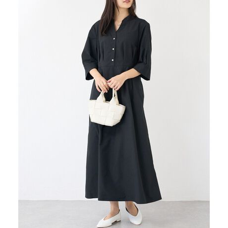 キーネックとウエストタックがスタイルアップも叶えてくれるメリハリが効いたデザイン。