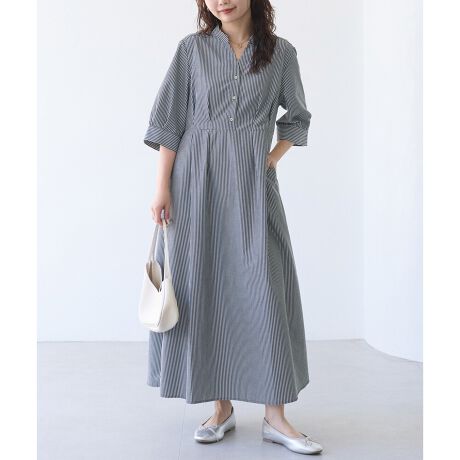 【好機能シリーズ】接触冷感/UVカット/速乾/ストライプタックワンピース