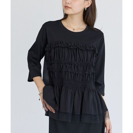 360°どこから見てもサマになる異素材ドッキングトップス。