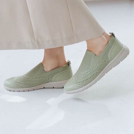 メッシュ素材が足幅にしっかり馴染み、とても履きやすい軽やかな一足です。ソフトな足当たりで実際の重量も軽く、長時間歩いても疲れにくいのが魅力。フィット感が心地よく、快適さと軽快さを両立したデザインです。