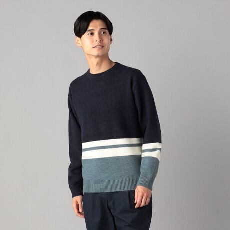 配色ボーダー クルーネックニット