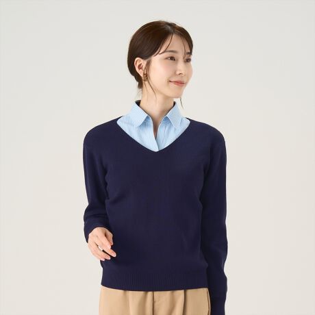 Vネックニットプルオーバー ベーシック レディース