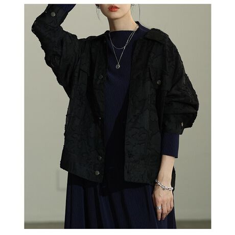 【ジャケット】 アウター 羽織り 黒 ブラック 長袖 ジャガード 綿 コットン シアー 秋服 冬服