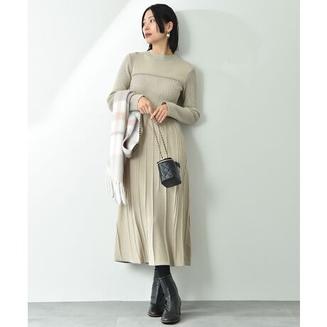 編地切替デザインニットワンピース