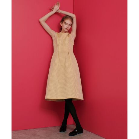 縦のタックでウエストシェイプしていて切り替えがないのですっきりりとしたシルエットが女性らしい1枚です。