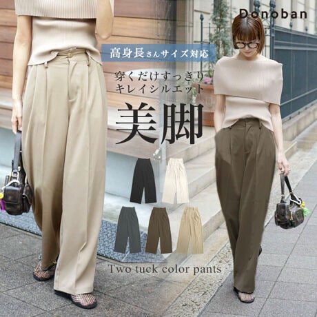 長めの丈設定でスタイルアップ効果のあるワイドパンツ。