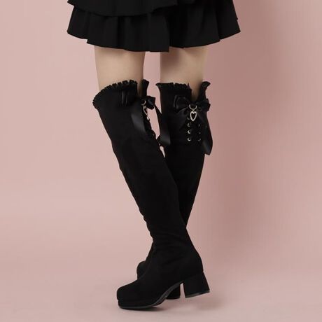 かわいく盛れちゃう♪フリル×リボン付きロングブーツ!