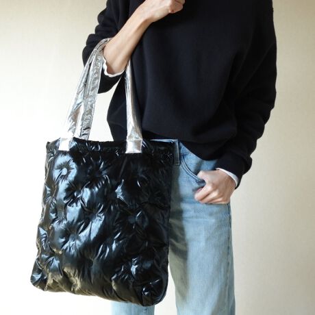 光沢ナイロン素材を使用しましたキルティングトートバッグです。