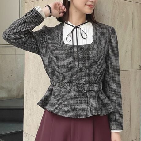 ペプラムシルエットがクラシカルなダブル釦のジャケット。