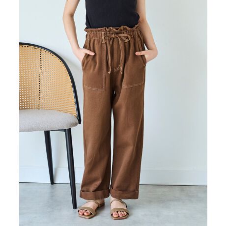 ボーイズライクな雰囲気に、ウエストギャザーとリボンでレディな味付けを。