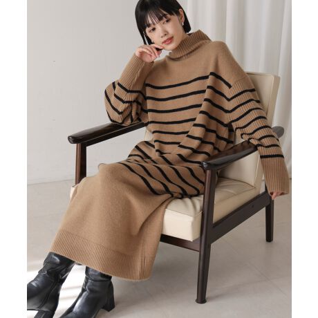 一枚でカジュアルなんだけど、大人が着てきちんと決まるハイネックニットワンピース。