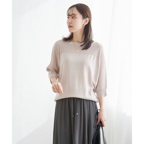 肩とボディで編地を切り替えたデザインが、シンプルながらも奥行きのある表情を演出するドルマンスリーブニット。