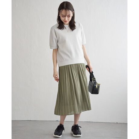 バックのメタルジップがポイントのプルオーバーと、体型カバーもできすっきり見えするプリーツスカートです。