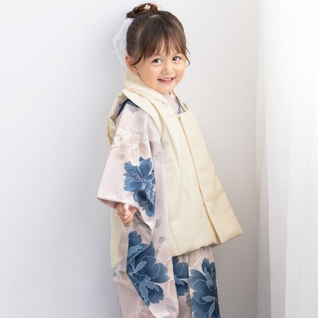 きもの館SOUBIENのプライベートブランド『floro by SOUBIEN』(フローロ)の女の子の七五三やお宮参りにおすすめな女児用の被布着物セットです。