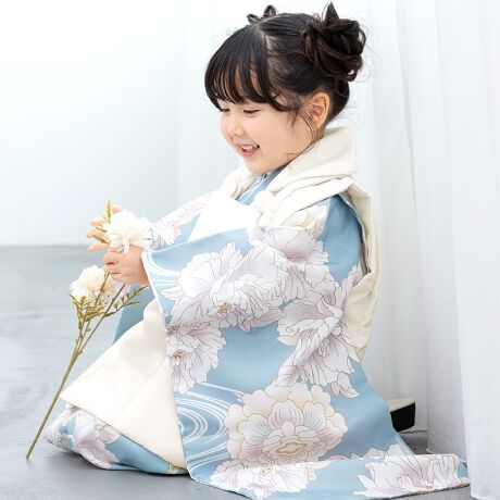 きもの館SOUBIENのプライベートブランド『floro by SOUBIEN』(フローロ)の女の子の七五三やお宮参りにおすすめな女児用の被布着物セットです。