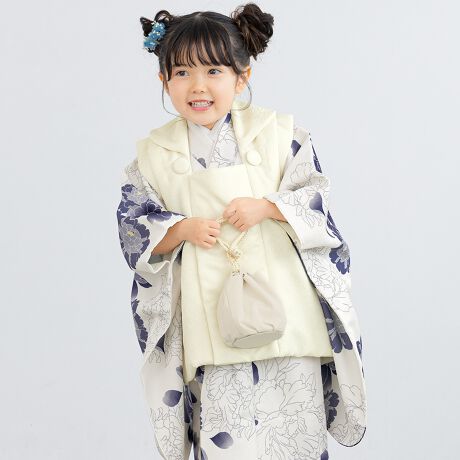 きもの館SOUBIENのプライベートブランド『floro by SOUBIEN』(フローロ)の女の子の七五三やお宮参りにおすすめな女児用の被布着物セットです。